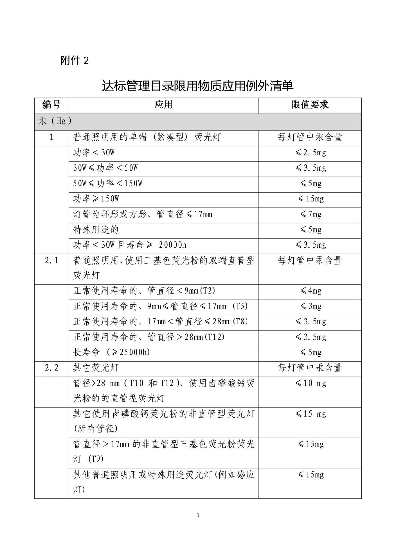 2018年3月15日中华人民共和国工业和信息化部发布了《电器电子产品有害物质限制使用达标管理目录(***批)》和《达标管理目录限用物质应用例外清单》,并将于2019年3月15日正式施行。纳入目录的产品,铅、汞、镉、六价铬、多溴联苯和多溴二苯醚的含量应该符合电器电子产品有害物质限制使用限量要求等相关标准,并纳入电器电子产品有害物质限制使用合格评定制度管理范围。