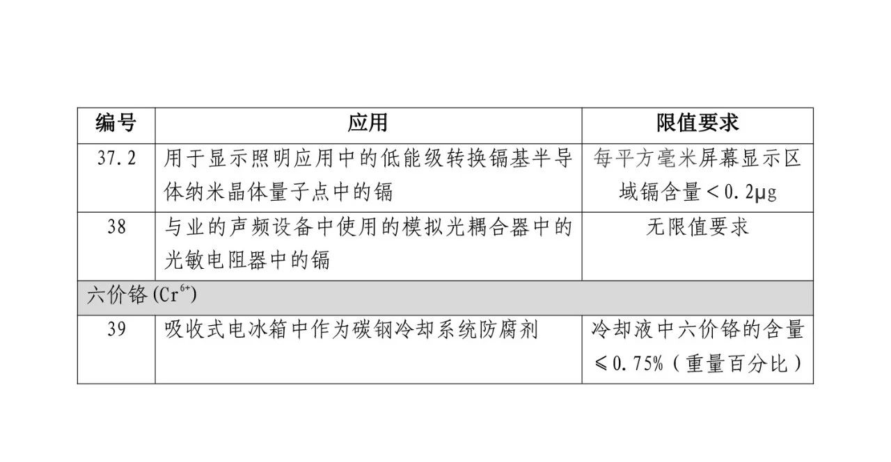 为贯彻落实《电器电子产品有害物质限制使用管理办法》,2018年3月15日中华人民共和国工业和信息化部发布了《电器电子产品有害物质限制使用达标管理目录(***批)》和《达标管理目录限用物质应用例外清单》,并将于2019年3月15日正式施行。纳入目录的产品,铅、汞、镉、六价铬、多溴联苯和多溴二苯醚的含量应该符合电器电子产品有害物质限制使用限量要求等相关标准,并纳入电器电子产品有害物质限制使用合格评定制度管理范围。列入《达标管理目录限用物质应用例外清单》的可暂不按本要求执行。