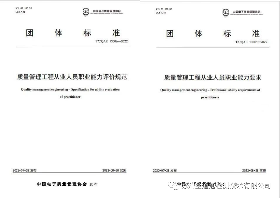 近日,喜讯传来,由我司参与编制的 《质量管理工程从业人员职业能力评价规范》和《质量管理工程从业人员职业能力要求》等两份团体标准由中国电子质量管理协会正式发布。